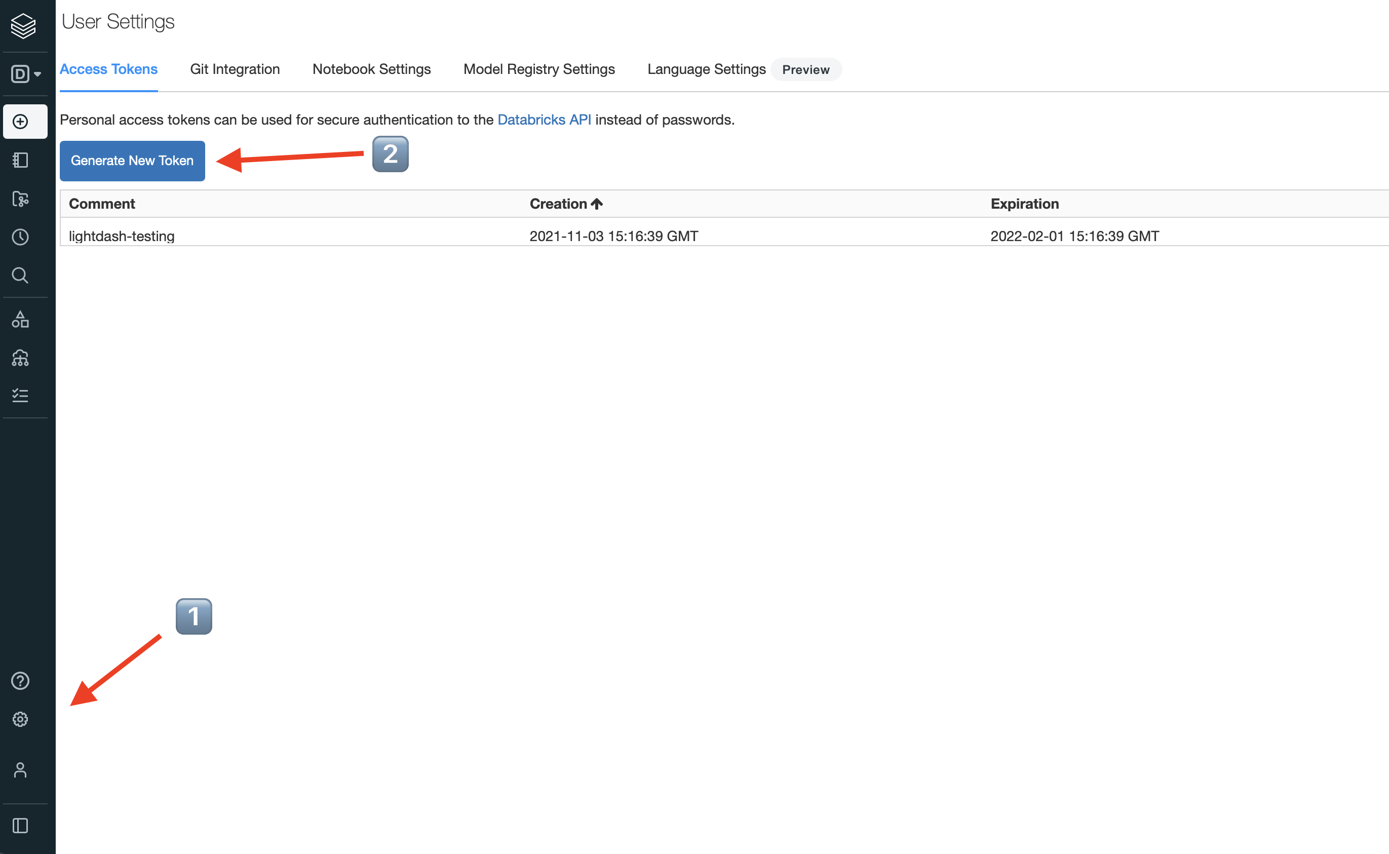 Generate token. You’ll be asked to enter a name and expiry. - Copy the token