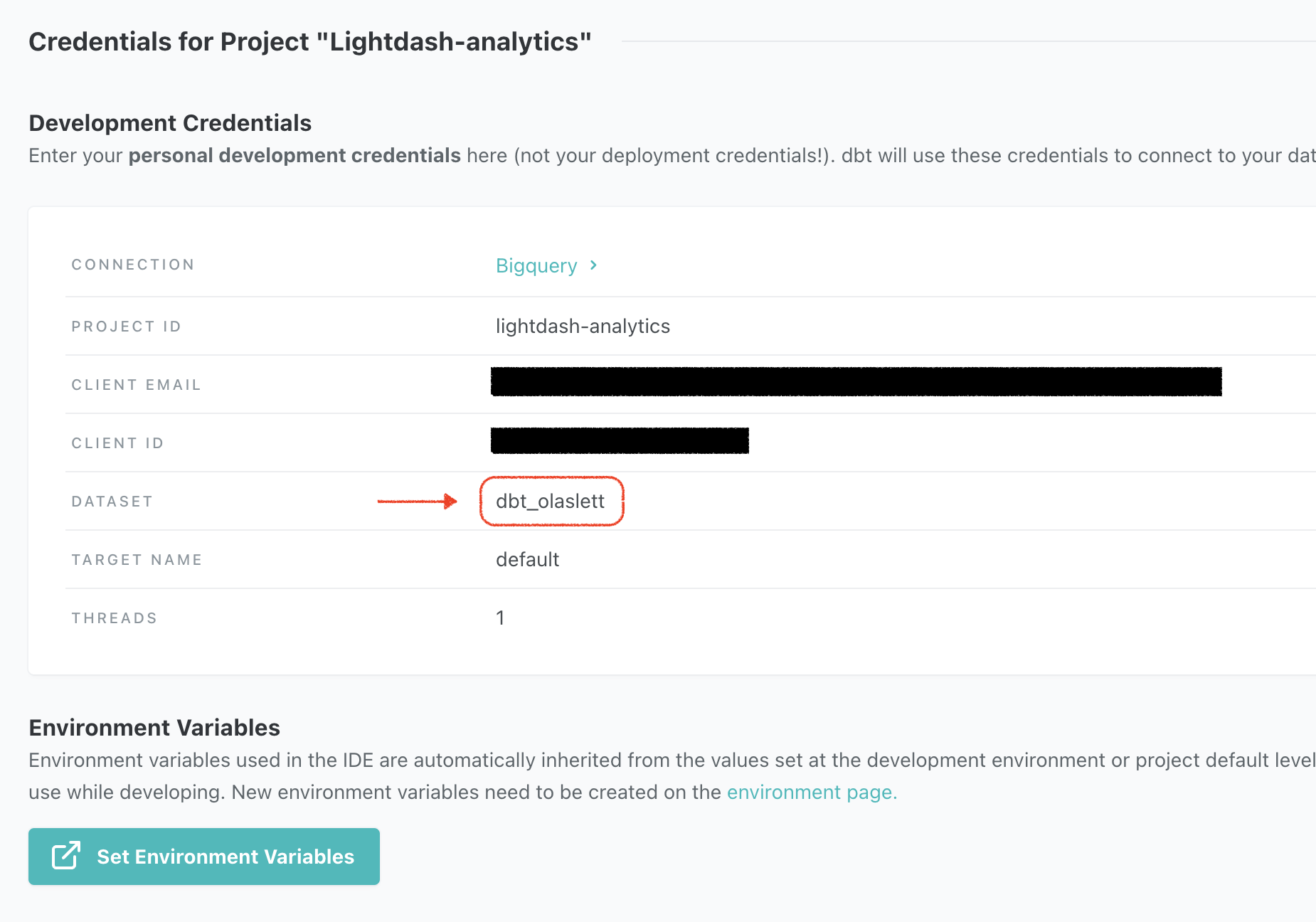 id and pop it into the project field in the Warehouse Connection form in Lightdash.