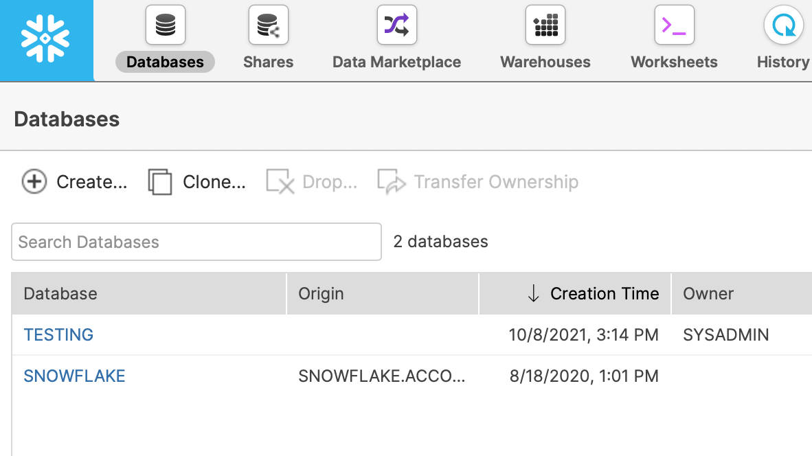 This is the login name for your Snowflake user. This is usually the same username you use to login to Snowflake. Alternatively, you can create a new user through the snowflake consolewith a username and password specifically for Lightdash to use. If you’re a snowflake admin you can list all users available in the snowflake console: