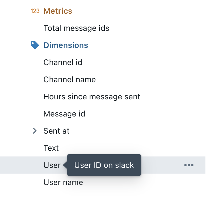 By default, Lightdash pulls in the descriptions you’ve included for your dimensions. But, you can override the description you see in Lightdash using thedescription property.