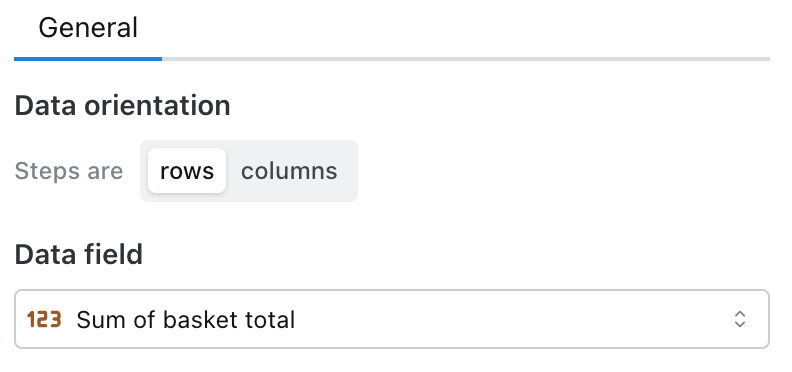 When rows is selected, each row of your data represent one step. The first column in the data will be treated as the labels for the steps, and you can choose which numeric column to treat as the value of the step.