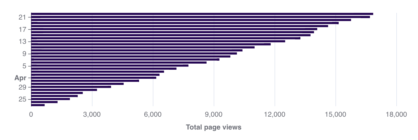 Anonymous device count column, the value you get is much higher than the total shown in the table. This is because the same device can view pages on our website across many months. So, when you add up the values in the table, you’ll be counting some devices more than once.