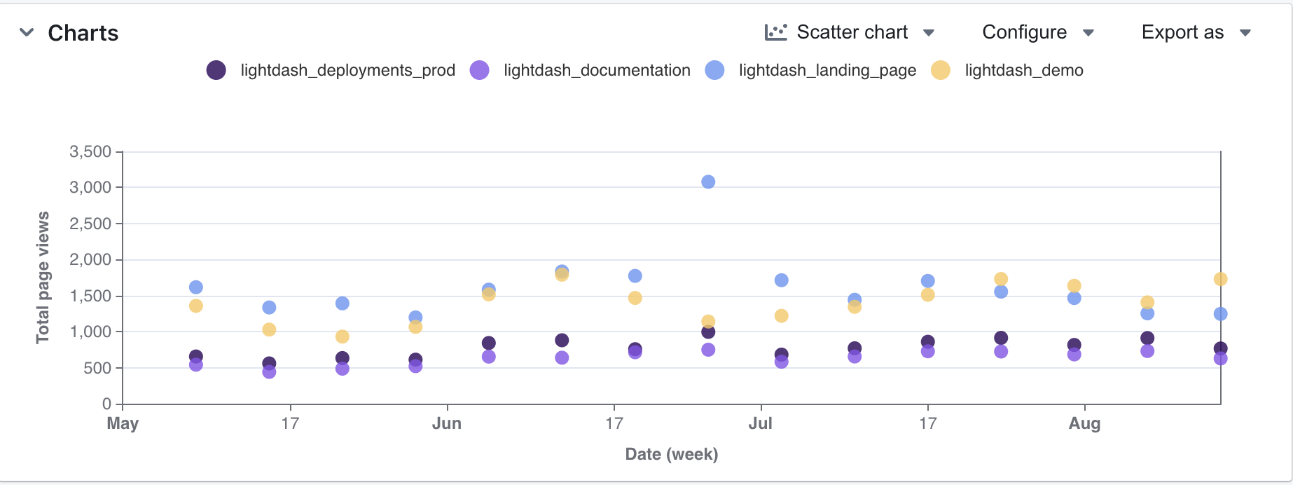 Lightdash uses a SQL query to calculate the distinct number of devices across all of the months so we avoid double-counting devices.