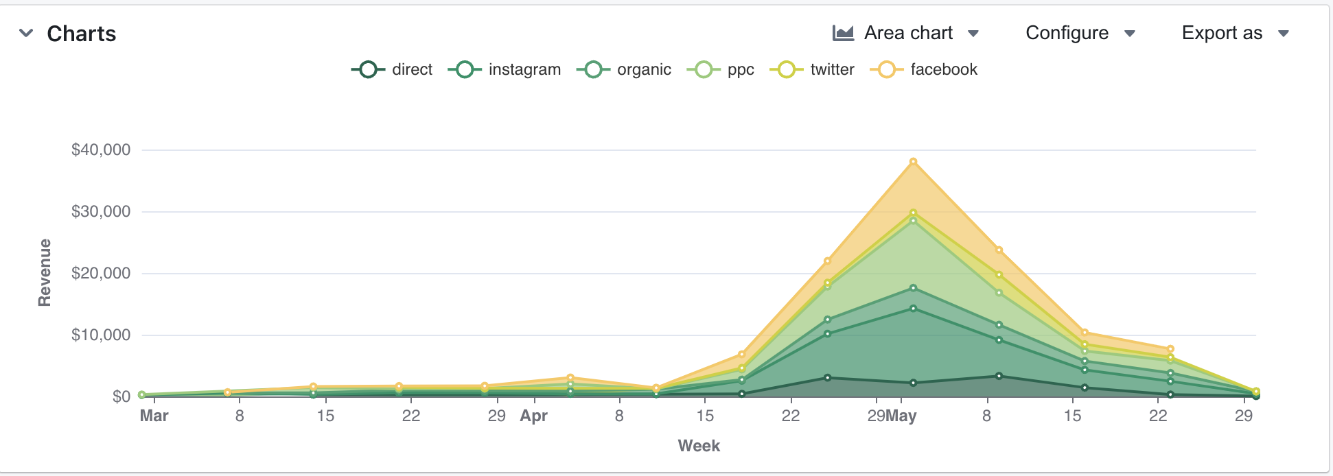 - you’re showing multiple series over time. If you just want to show one value over time, also consider a line chart instead; especially if you don’t want your y-axis to start at zero. If you only have a few dates, you can also consider using a column chart. In both cases, labelling will be better.