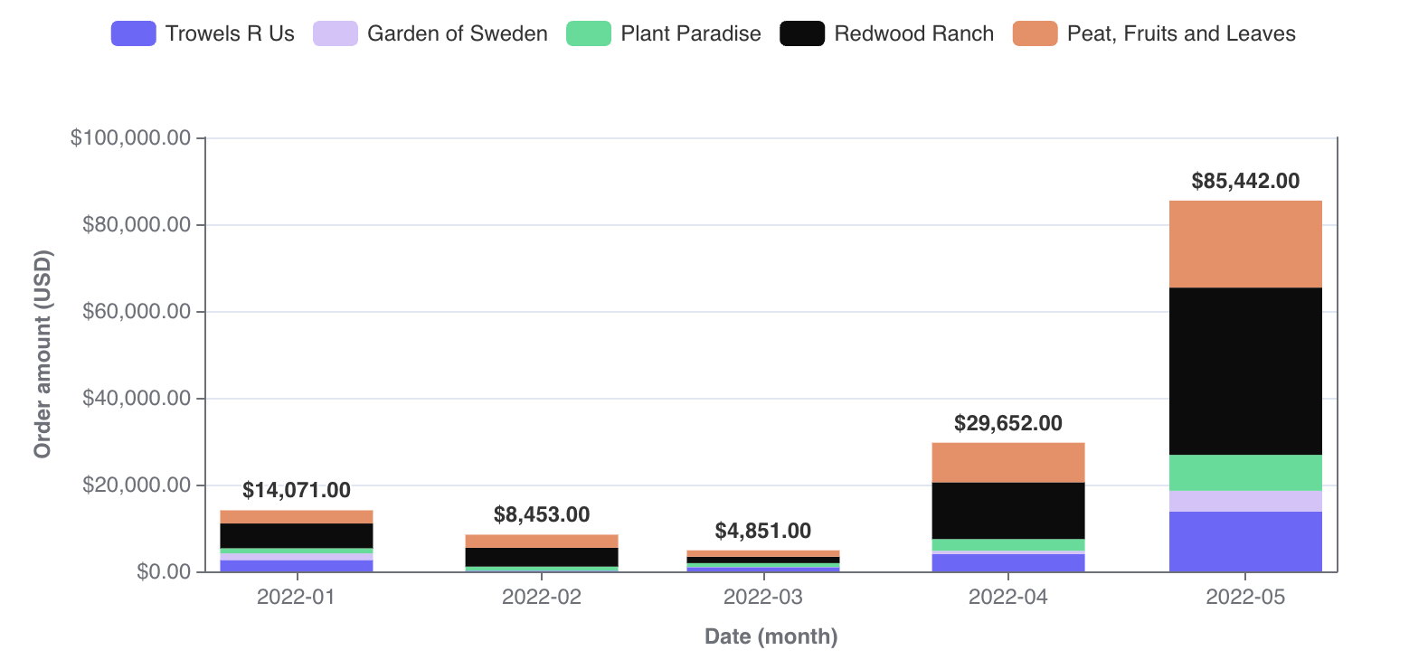 100% Stacked Bar Charts are useful when you need to visualize how the composition of a metric changes over time, or how the composition changes across different groups.