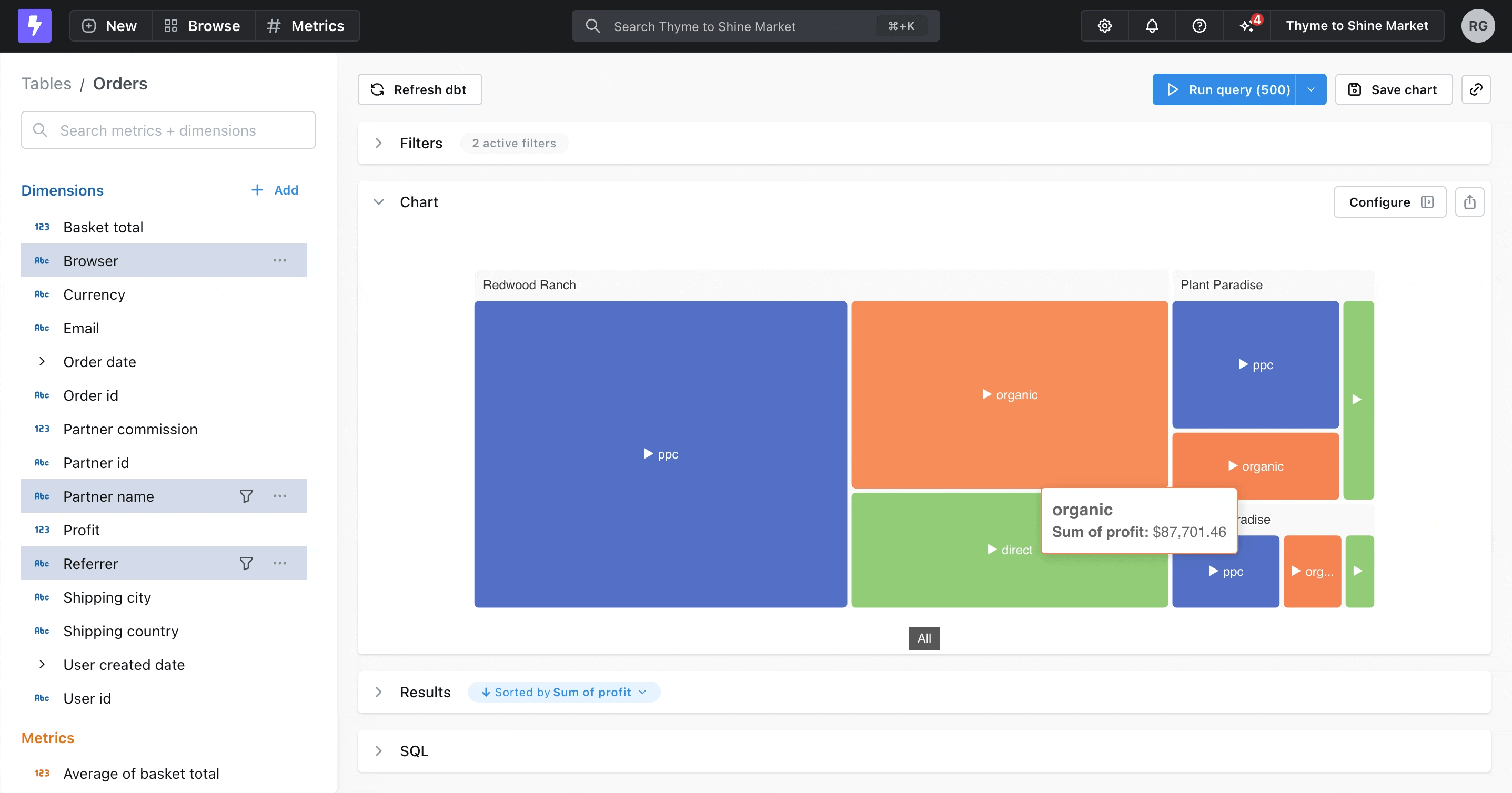 Partner namecolumn orange when theTotal orderscolumn is greater than 1,000.